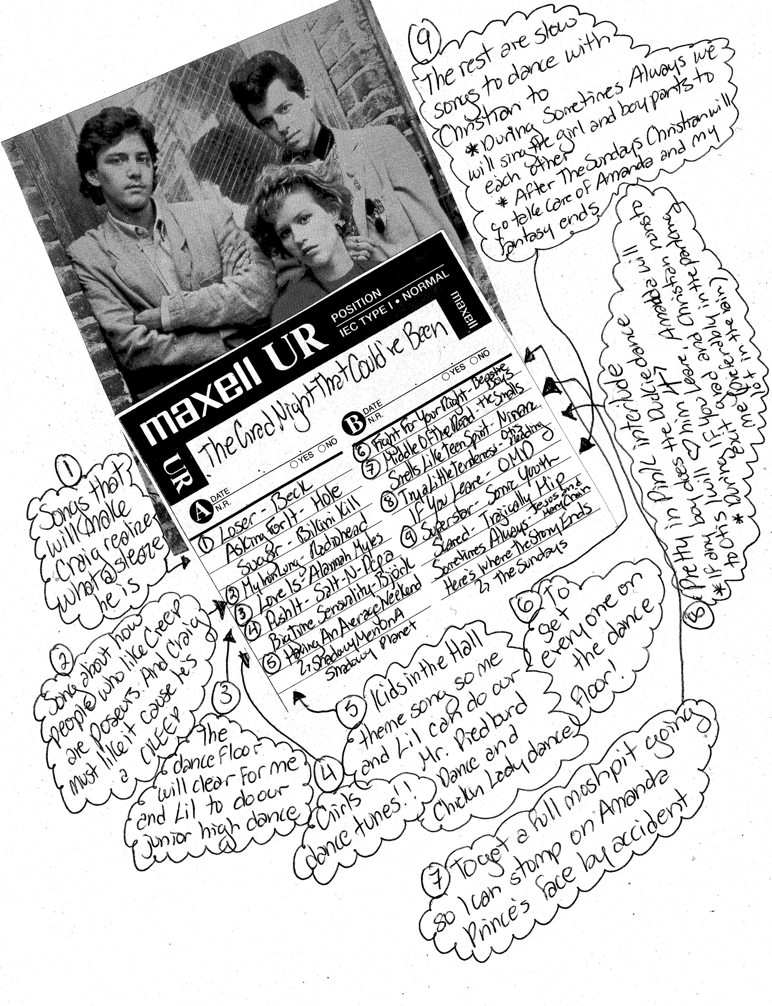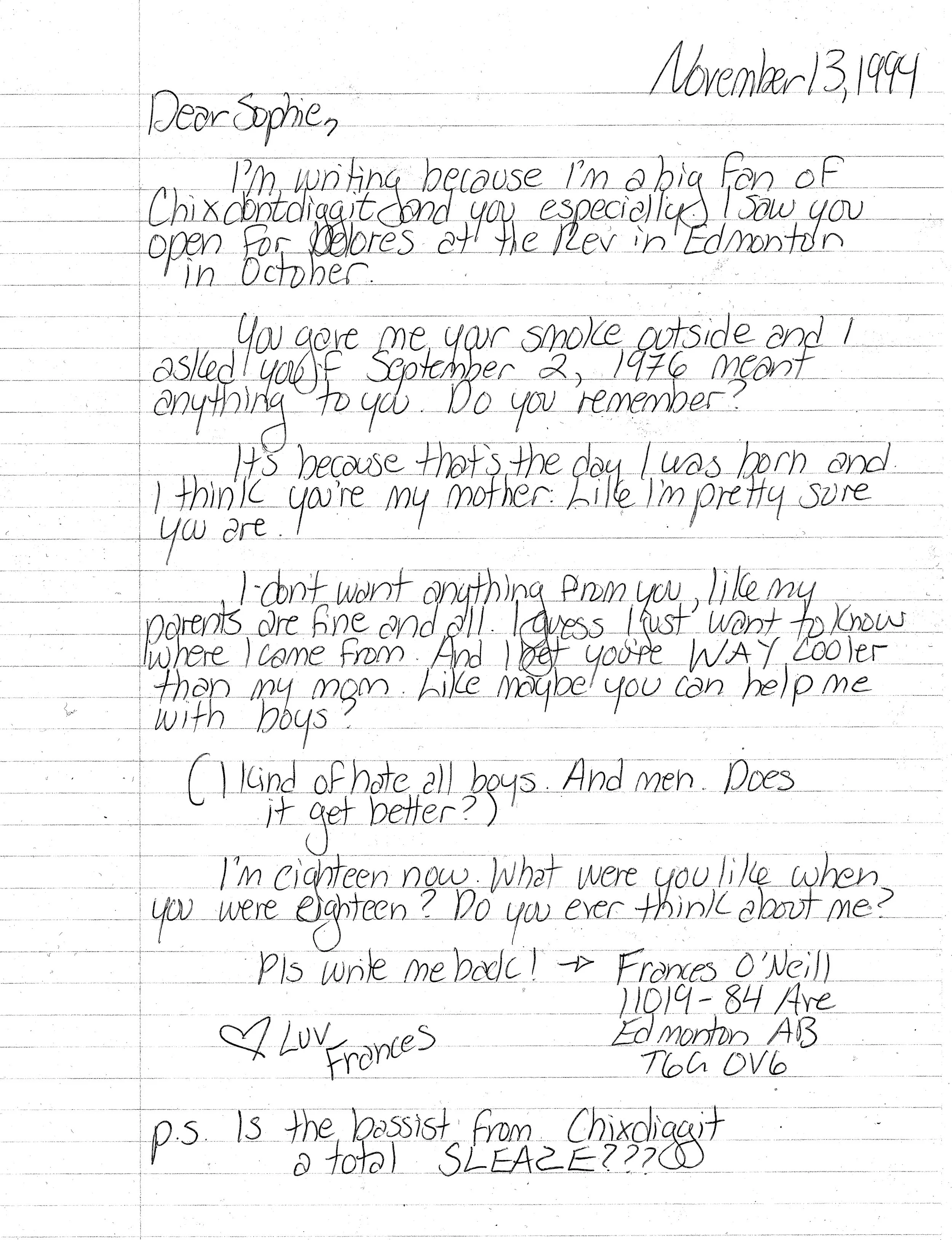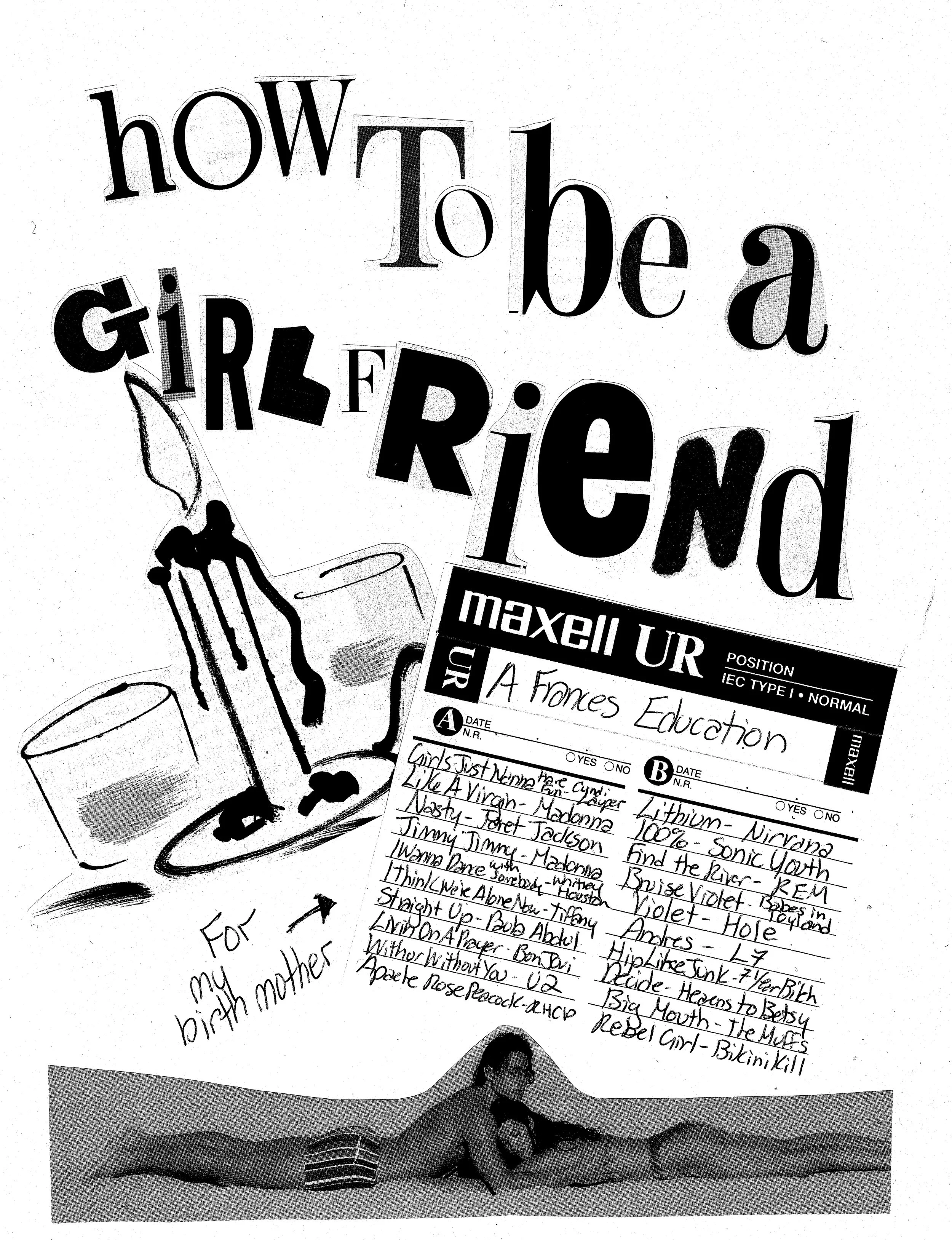 The main character of the novel, Frances, creates a zine, pages of which appear after each chapter, along with mix tape liner notes and letters that she and her birth mother send to one another. Below are some examples from the novel.