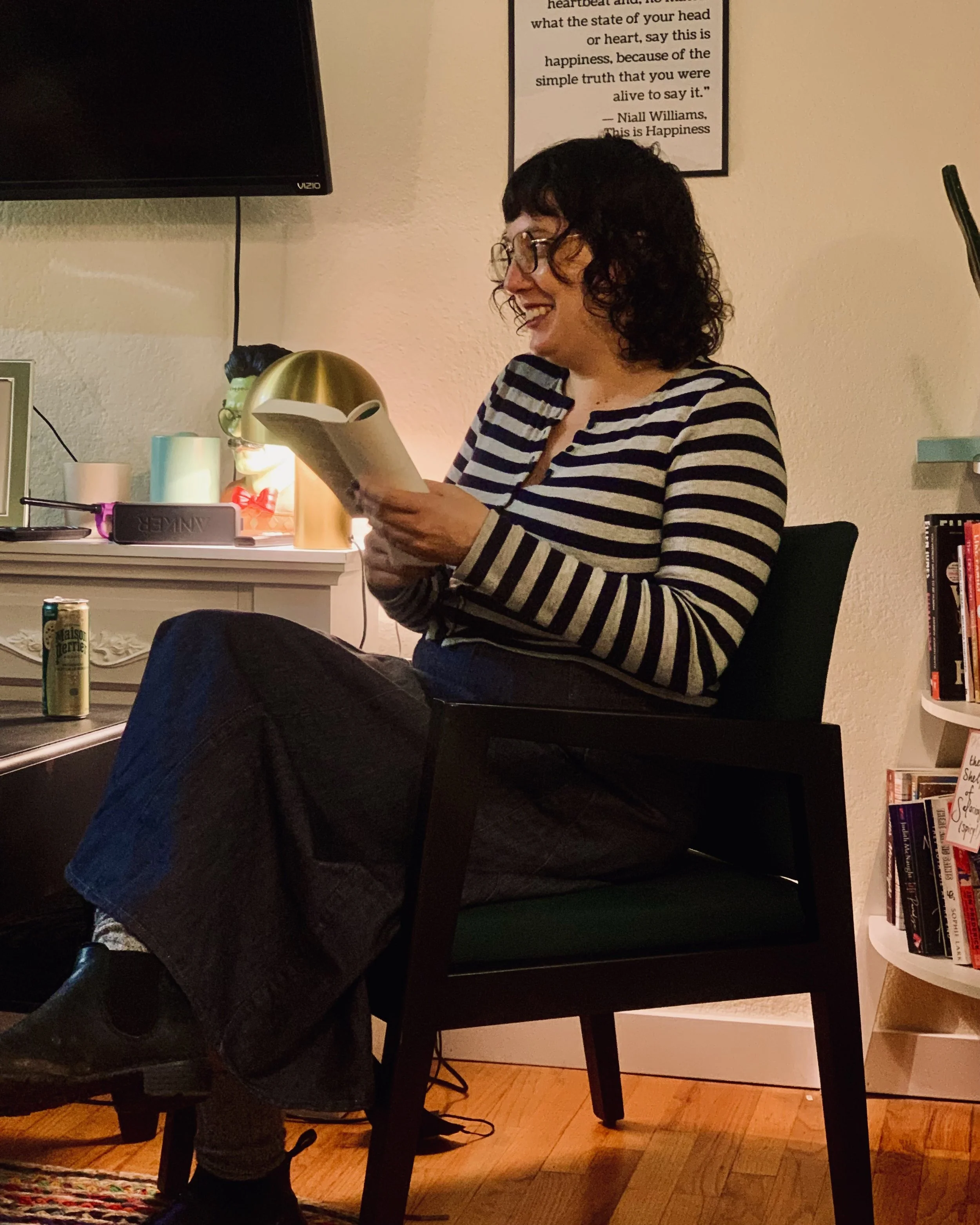 Our new location has limited seating. There are 20 seats that can be reserved for each reading. If you’d like to reserve a seat for the April 9th reading, please send me an email. I’ll ask you to pay your $5 admission ahead of time, either via e-transfer or by arrangement.