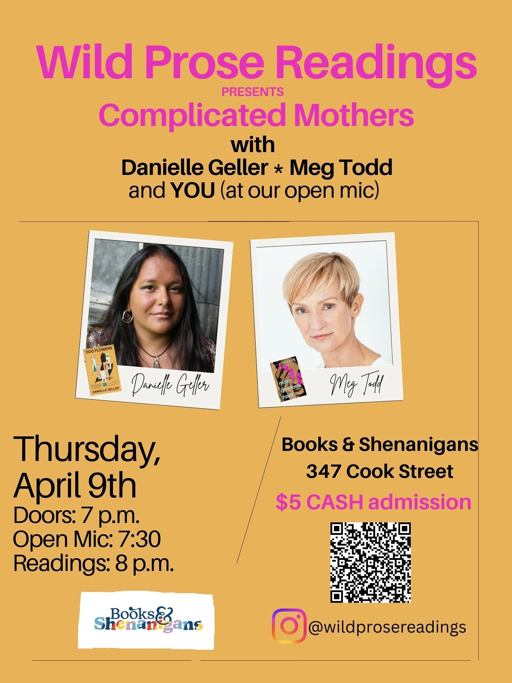 Please join us on Thursday, April 9th for Complicated Mothers with Danielle Geller and Meg Todd. Danielle Geller will read from her memoir, Dog Flowers, and Meg Todd will read from her debut novel, Most Grievous Fault. We’ll finish with a Q&A with the authors.